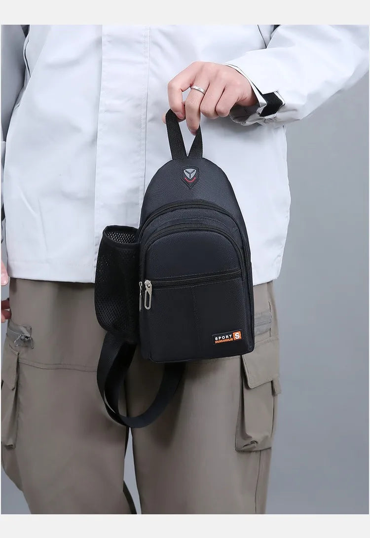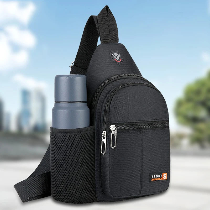 Organização Inteligente: Conta com múltiplos compartimentos com zíper, incluindo um bolso principal espaçoso e bolsos menores, para manter seus pertences organizados e seguros.