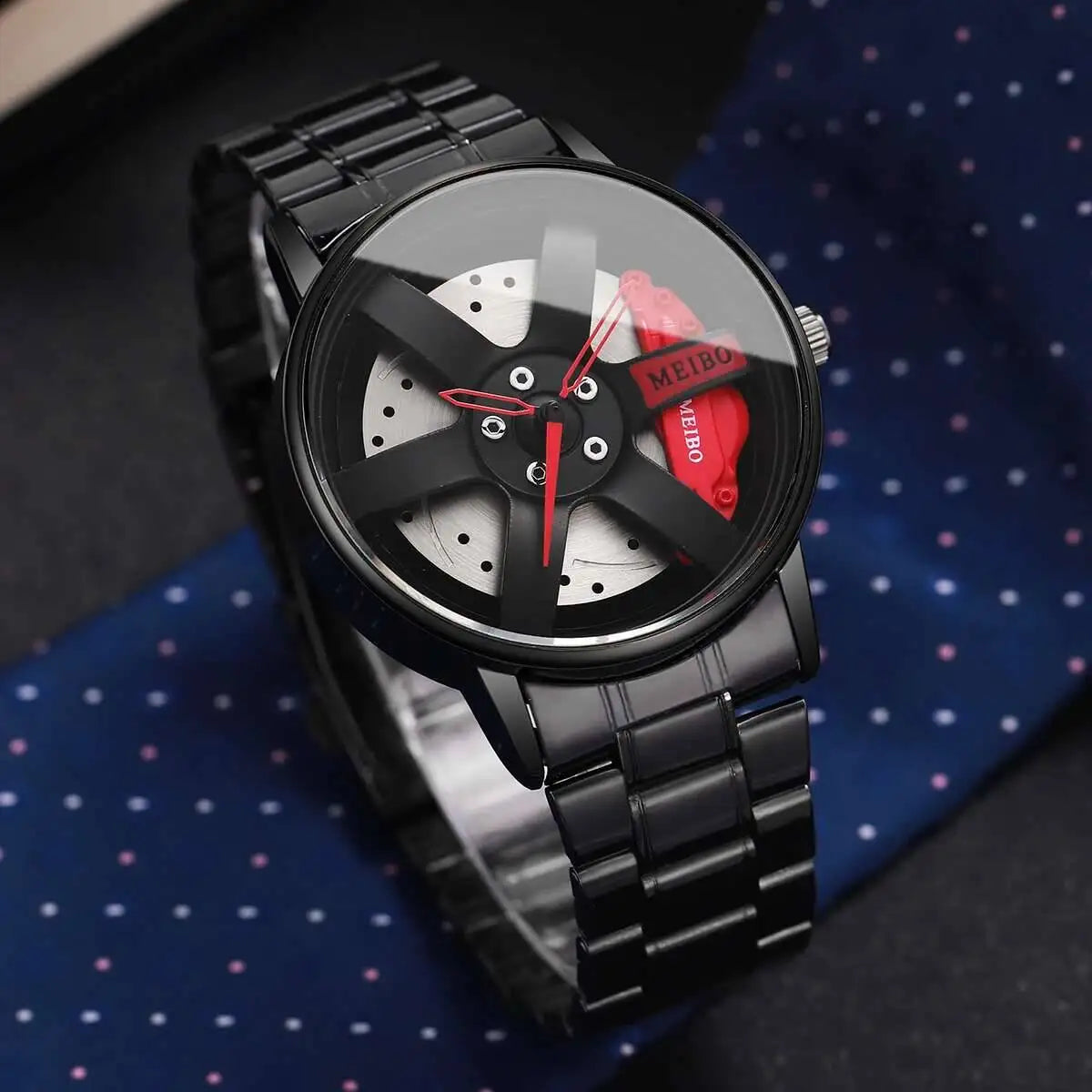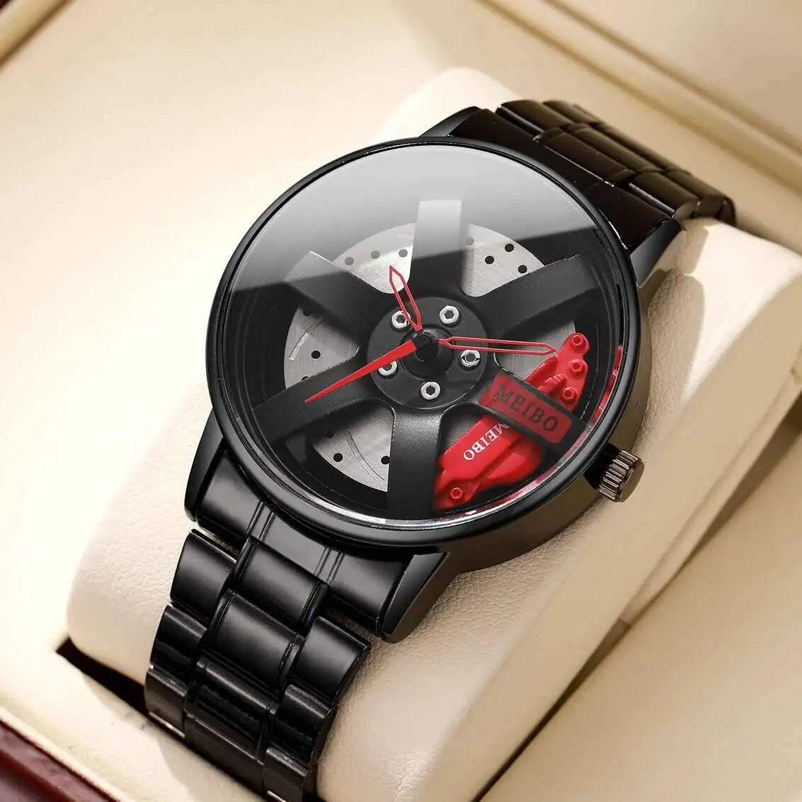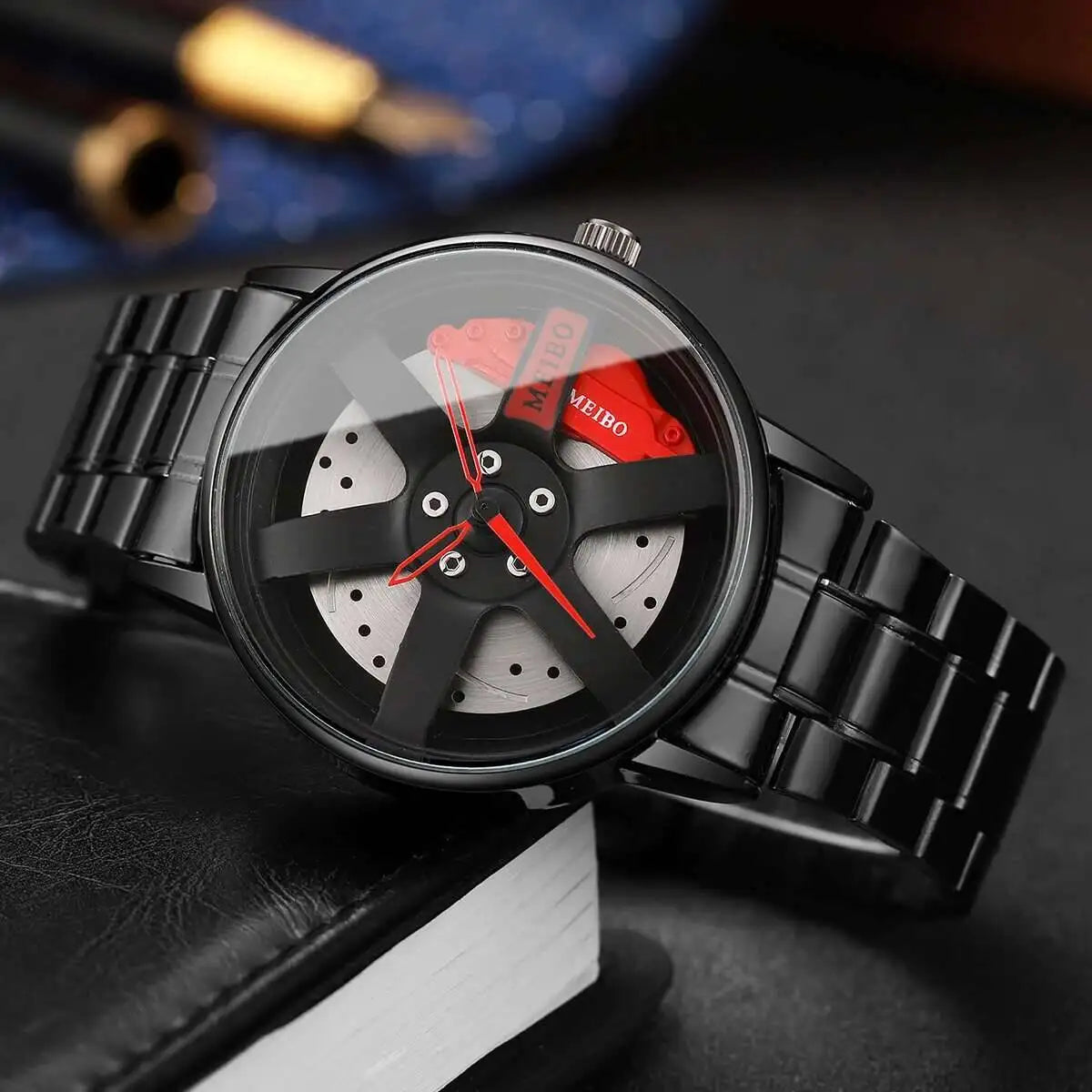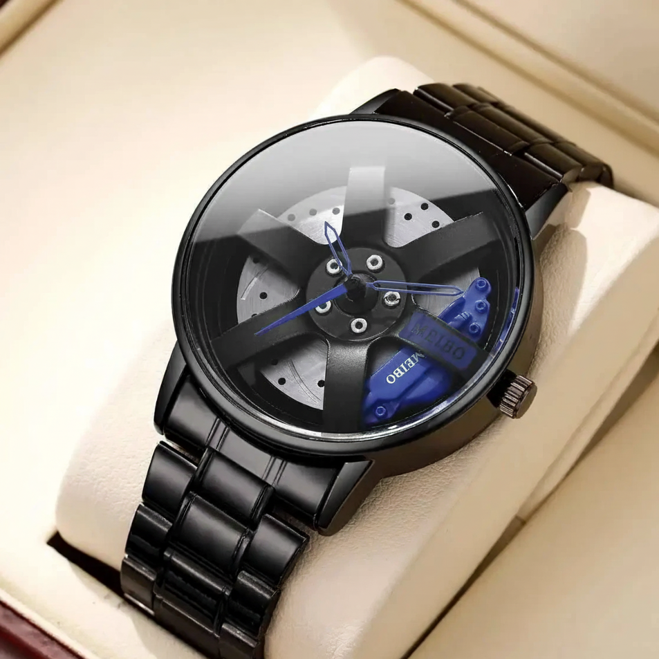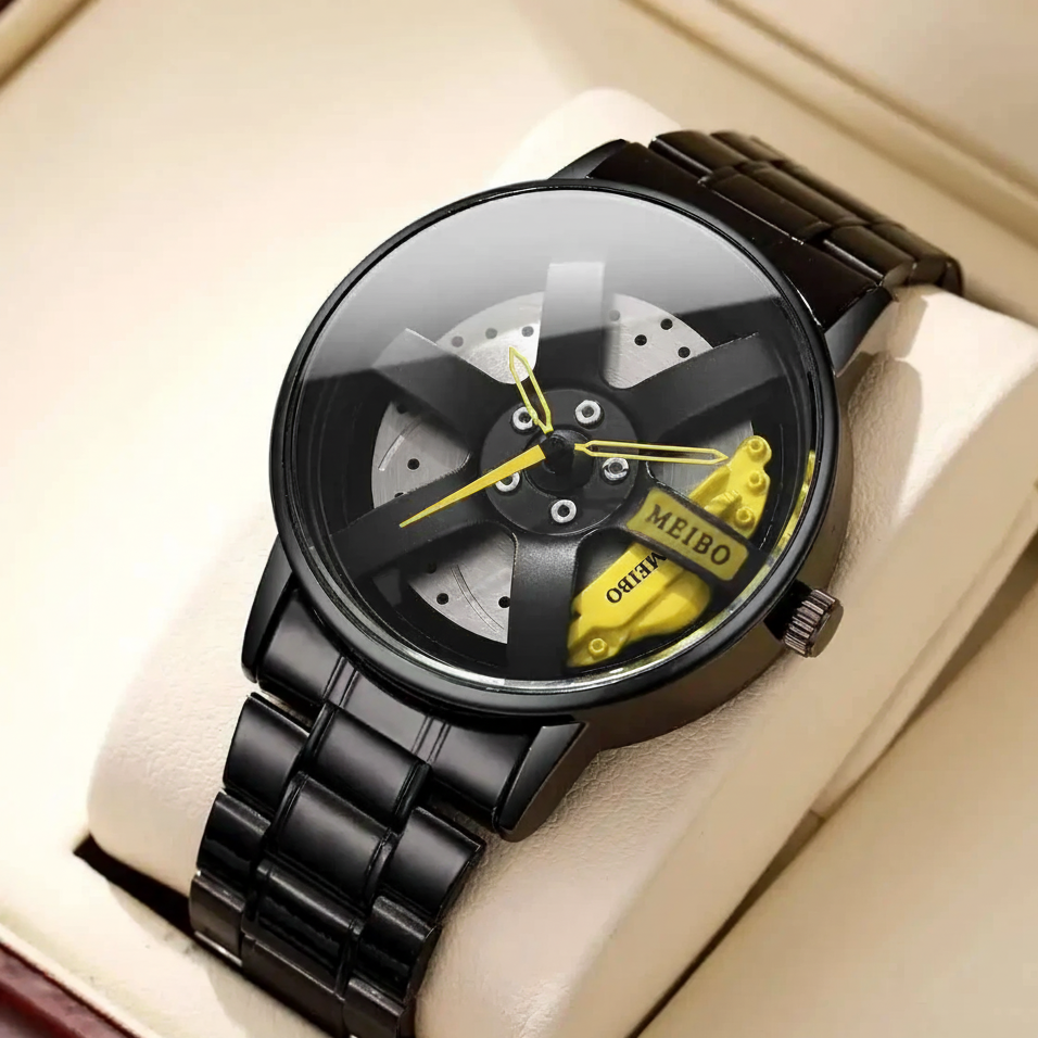 Leve a emoção da pista para o seu pulso! Este relógio exclusivo é um tributo à engenharia automotiva de alta performance, transformando o sistema de freio a disco, roda e pinça em um acessório de pulso marcante e moderno. Perfeito para entusiastas de carros, pilotos e qualquer um que aprecie um design ousado e inovador.